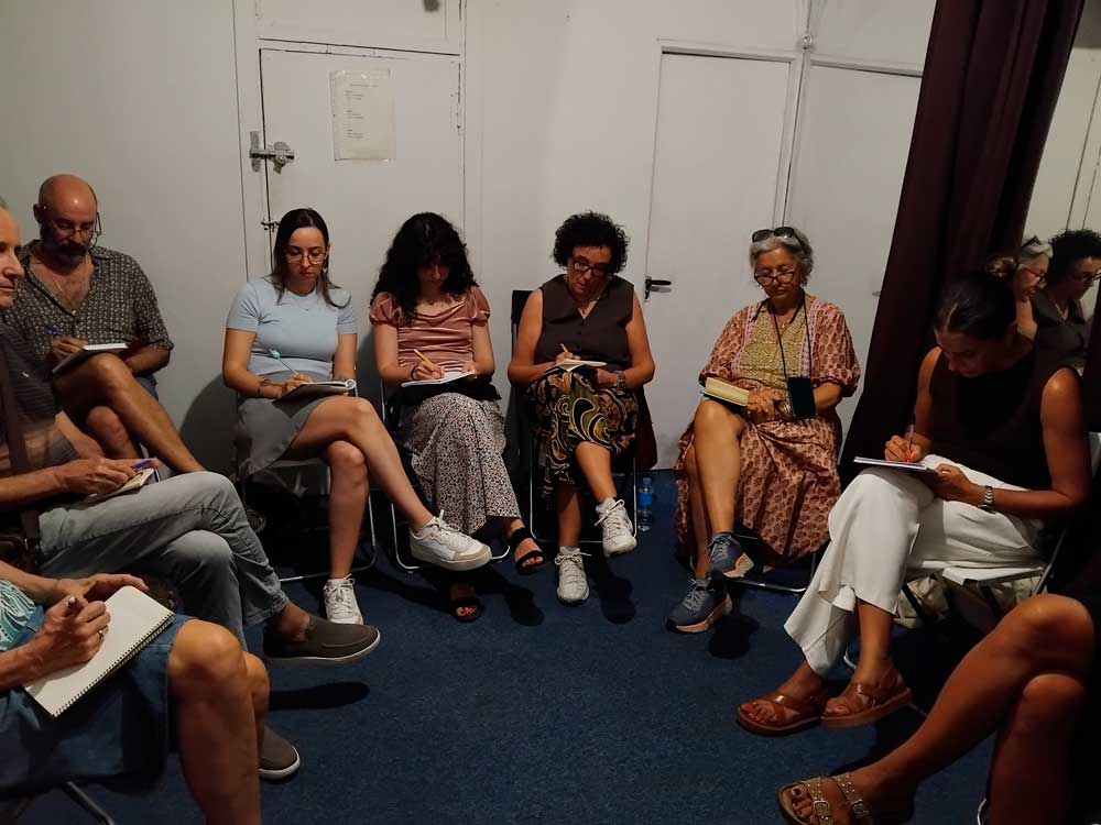 Tres sesiones prácticas al mes en Lavapiés. Escritura, lectura y corrección en grupo para desarrollar ritmo técnica y una voz narrativa más sólida.